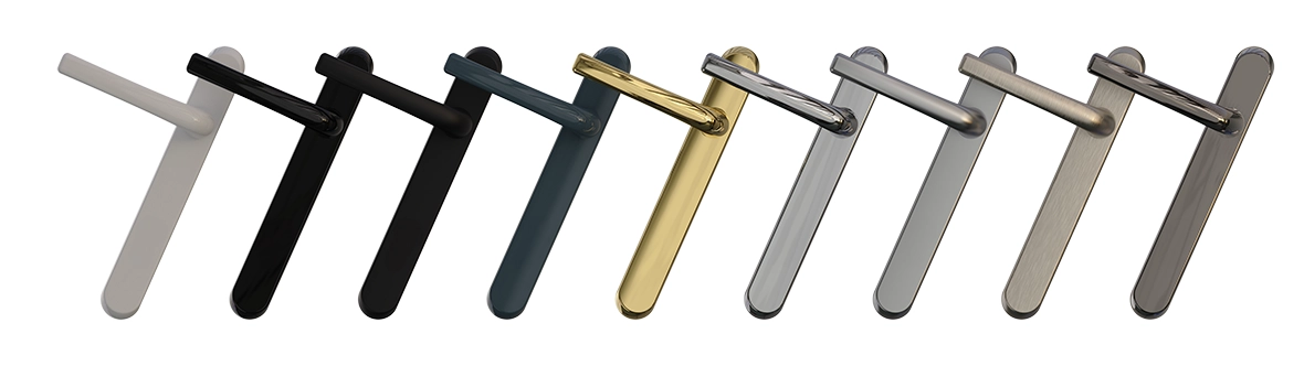 • Affinity Plus Door Handle range suited with Affinity window handles, door hinges, knockers and letterplates